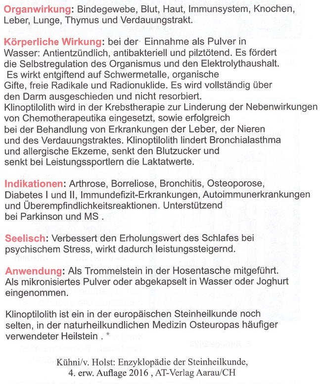 Wir sind aus rechtlichen Gründen verpflichtet, dich darauf hinzuweisen, dass die Wirkung von Klinoptilolith, harmonisierenden Edelsteinen und Edelmetallen wissenschaftlich nicht nachweisbar oder medizinisch anerkannt ist. Der Einsatz von Klinoptilolith, harmonisierenden Edelsteinen und Edelmetallen ersetzt nicht einen ärztlichen Rat oder ärztliche Hilfe. Es gibt keine Anhaltspunkte dafür, dass Klinoptilolith, harmonisierende Edelsteine und Edelmetalle krankheitsvorbeugende und/oder krankheitslindernde und/oder krankheitsheilende Wirkungen haben. Die Ausführungen stellen die persönliche Meinung des Verfassers dar, ohne jedoch wissenschaftlich fundiert zu sein.